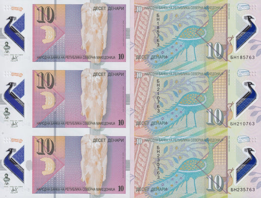 North Mecedonia 10 Denari 2018 P 25 Polymer UNC 1/10 Bundle LOT 10 pcs
