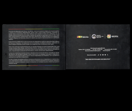 Bolivia 1825-2025 200 Anniversary Polymer UNC Commemorative With Folder