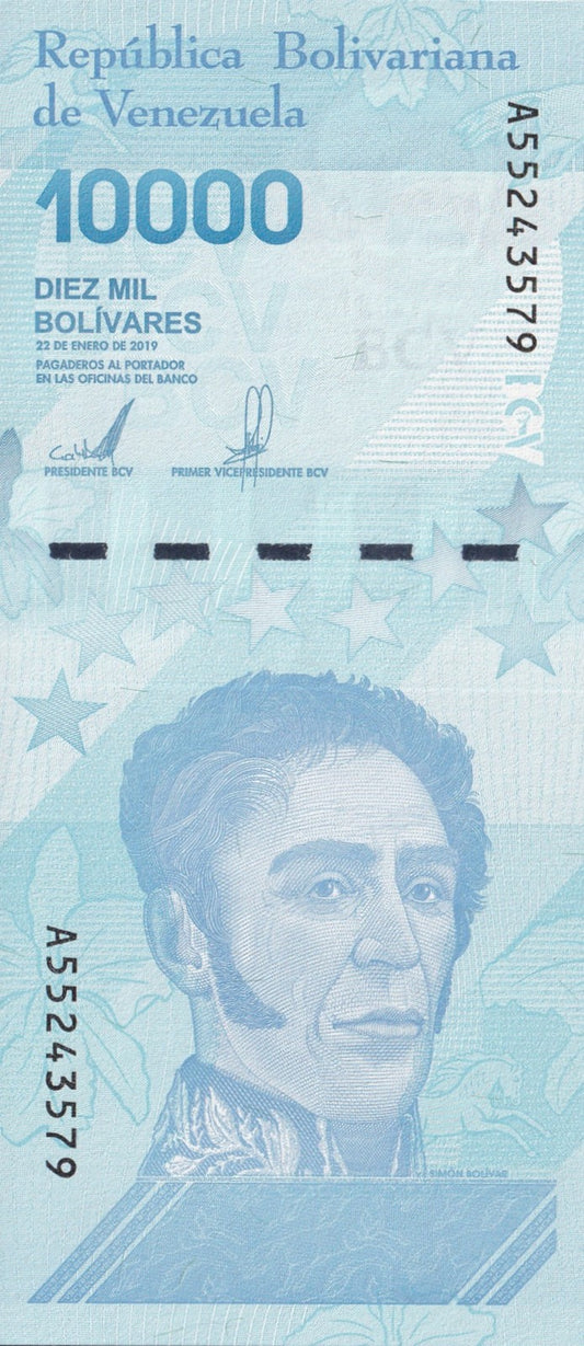 Venezuela 10000 Bolivares 2019 P 109(2) Narrow Security Thread UNC