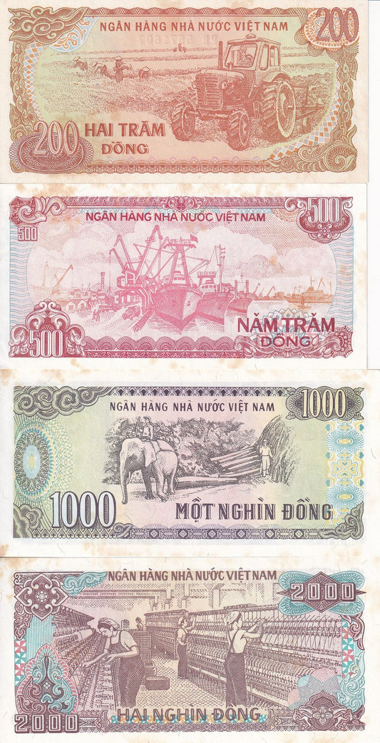Viet Nam Vietnam 200 500-2000 Dong 1987-1988 P 100 101-107 UNC Set 4 pcs FOXING