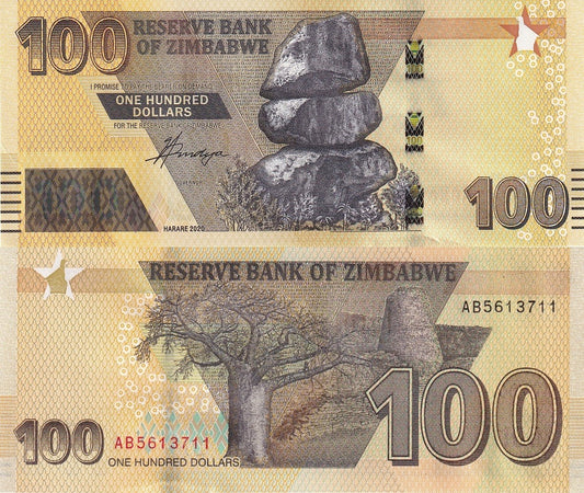 Zimbabwe 100 Dollars 2020 P 106 UNC