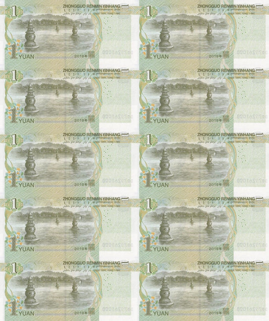 China 1 Yuan 2019 P 912 UNC Set 10 pcs. Same Prefix Same Last 3 Digit