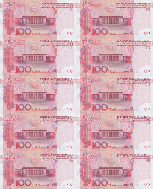 China 100 Yuan 2015 (2025) P 909 (5) UNC Set 10 pcs 6 Prefix SOLID 1111 - 0000