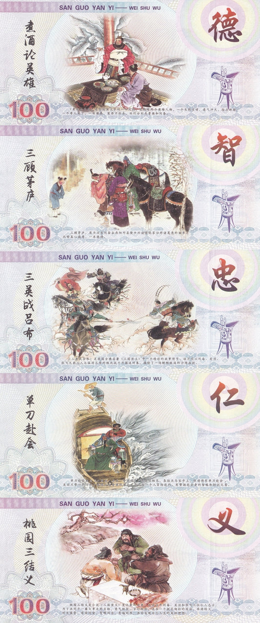 CHINA Coupons Private Issue Three Kingdoms Type 2 NO. Left Side UNC Set 5 pcs