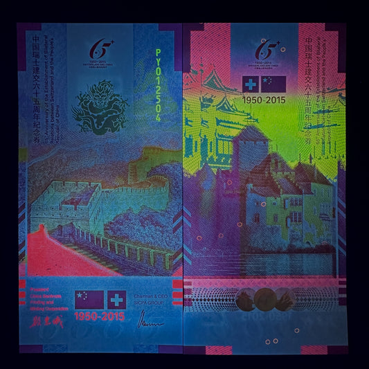 China Switzerland Banknote And Mint Corporation 2015 65th Comm. Test Note UNC