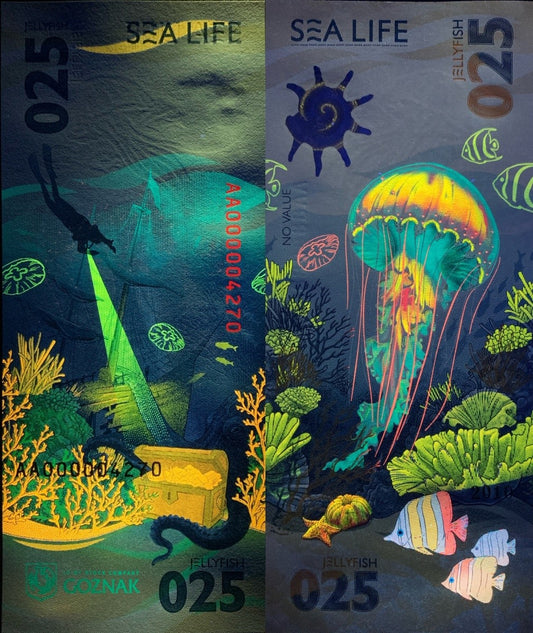 Goznak Sea Life Test Note 2025 New Jellyfish UNC AA Prefix LOW S/N 00000XXXX