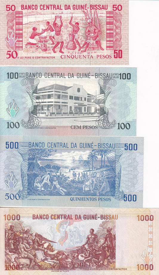 Guinea Bissau 50 100 500 1000 Pesos 1990-1993 P 10 11 12 13 Set 4 pcs.