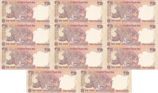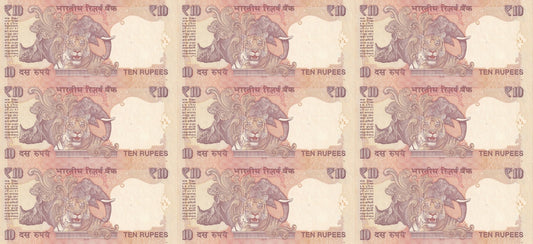 India 10 Rupees 2012 P 102 UNC Set 9 p Match Prefix 33s SOLID 111111-999999