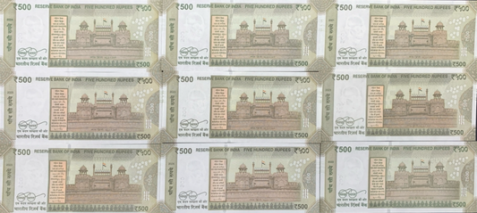 India 500 Rupees 2021-2025 P 114 UNC Set 9 pcs SOLID 1-9 111111-999999