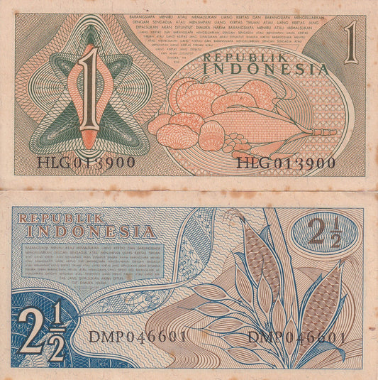 Indonesia 1 2½ Rupiah 1961 P 78 79 UNC FOXING Set 2 pcs