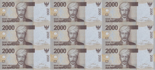 Indonesia 2000 Rupiah 2015 P 148g UNC Set 9 pcs SOLID 111111-999999