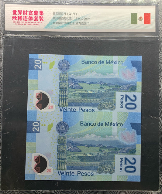 MEXICO 20 Pesos 2016 P 122z UNC Polymer UNCUT 2 IN 1 With Hard Case