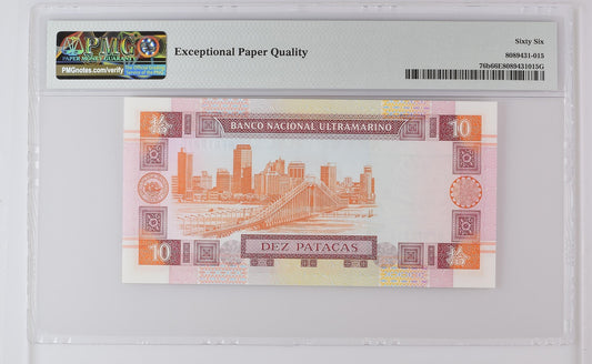 Macau Macao Banco Nacional Ultramarino 10 Patacas 2001 P 76b UNC PMG 66 EPQ