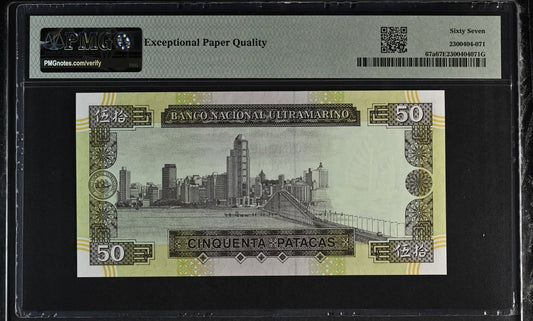 Macau Macao Banco Nacional Ultramarino 50 Patacas 1992 P 67a UNC PMG 67 EPQ