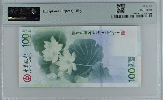 Macau China Banco da China COMM. 100 Patacas 2012 P 114 UNC PMG 66 EPQ AA Prefix