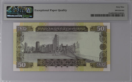 Macau Macao 50 Patacas 1992 P 67a UNC BNU PMG 69 EPQ 2nd TOP POP