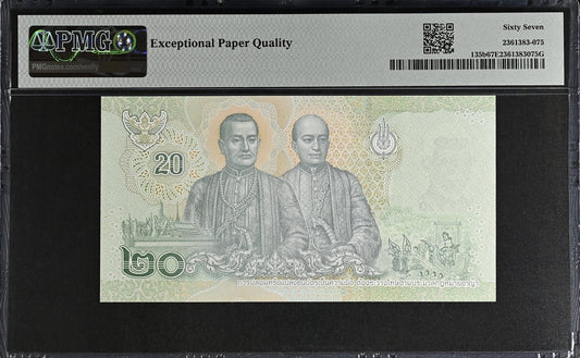 Thailand 20 Baht ND (2013) P 118 UNC PMG 67 EPQ Binary No. 1001100