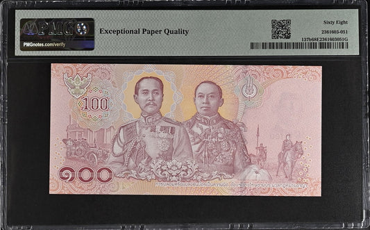 Thailand 100 Baht 2018 P 137b UNC PMG 68 EPQ Almost SOLID No 6888888 3rd TOP POP