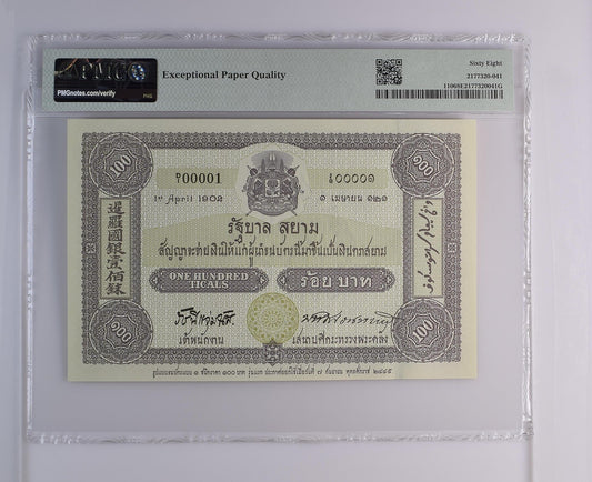 Thailand 100 Baht ND (1978) P 89 UNC PMG 67 EPQ LOW S/N 0000043 3rd TOP POP