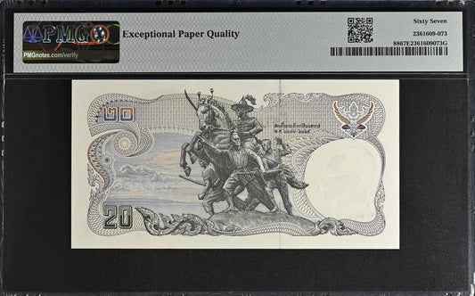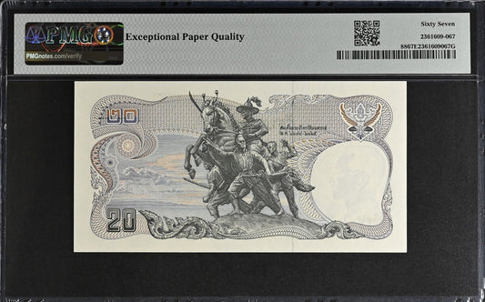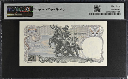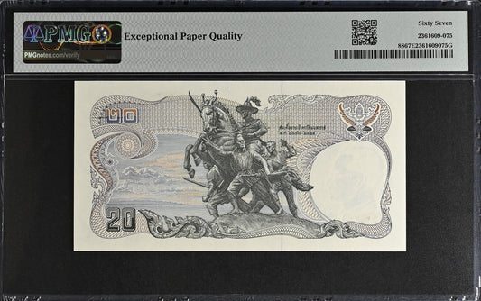 Thailand 20 Baht ND 1981-85 P 88 UNC PMG 67 EPQ 0A Prefix LOW S/N 67 3rd TOP POP