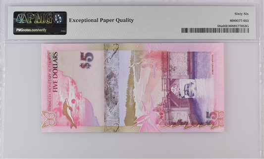 Bermuda Monetary Authority 5 Dollars 2009 P 58a UNC PMG 66 EPQ Onion Prefix