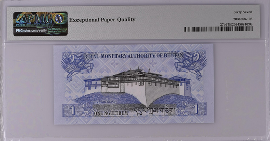 Bhutan 1 Ngultrum 2013 P 27b UNC PMG 67 EPQ Rotator No. 09888860