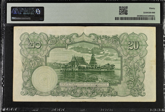 Thailand Government of Siam 20 Baht ND (1939) P 36 VF PMG 30 Wmk Constitution