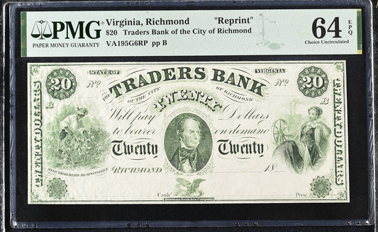 Virginia Richmond Reprint 20-100 Obsolete Bank Note UNC PMG 64 65 EPQ Set 3 pcs