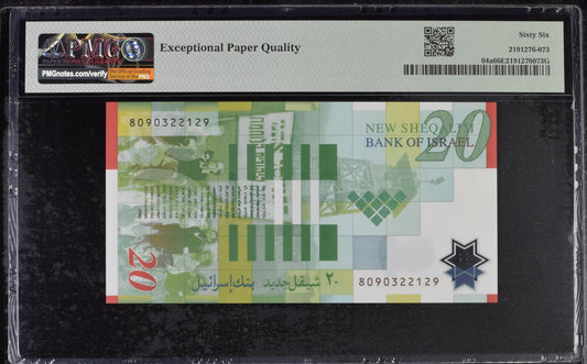 Israel 20 New Sheqalim 2008 P 64a Polymer UNC PMG 66 EPQ 3rd TOP POP