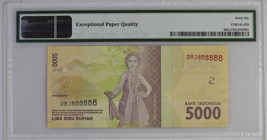 Indonesia 5000 Rupiah 2001 / 2015 P 142o UNC PMG 66 EPQ SOLID 8 - 888888