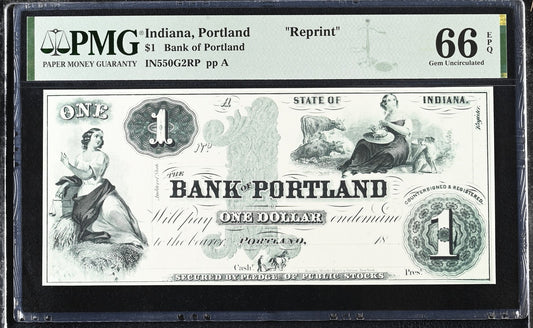 Indiana Portland Reprint 1-10$ Obsolete Bank Note UNC PMG 66 EPQ Set 4 pcs