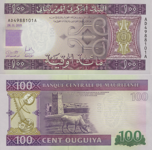 Mauritania 100 Ouguiya 2002 P 4k UNC 1/20 Bundle Lot 5 pcs