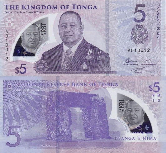 Tonga 5 Pa'anga 2023/2024 P 51 New Polymer UNC 1/20 Bundle Lot 5 pcs