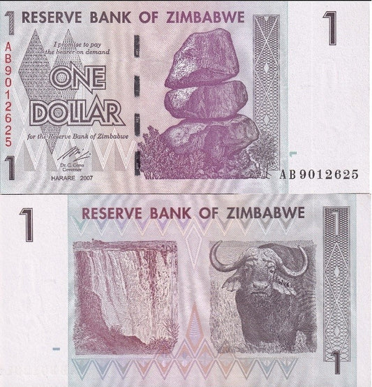 Zimbabwe 1 Dollar 2007 P 65 UNC 1 Bundle Lot 100 pcs