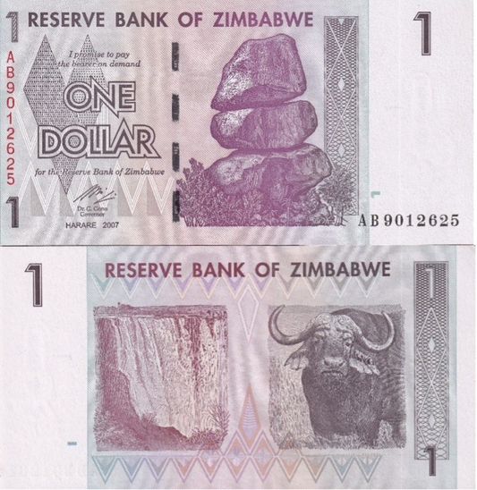 Zimbabwe 1 Dollar 2007 P 65 UNC 1/10 Bundle Lot 10 pcs