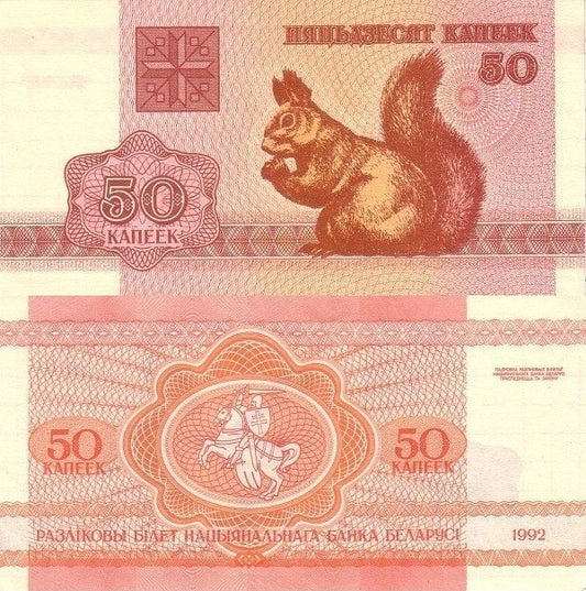 Belarus 50 Kapeek 1992 P 1(2-1) UNC 1/20 Bundle Lot 5 pcs