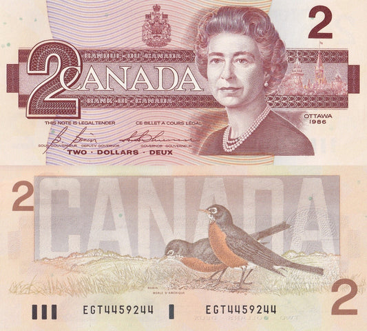 Canada 2 Dollars 1986 P 94c UNC Queen Elizabeth II 1/20 Bundle Lot 5 pcs