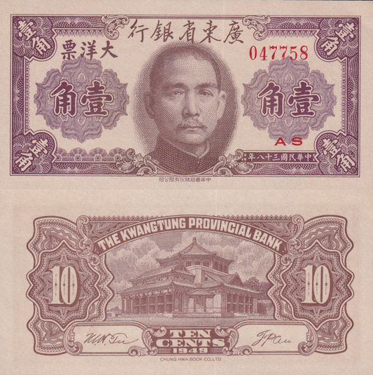 China 10 Cents 1949 P S2454 UNC 1/20 Bundle Lot 5 pcs