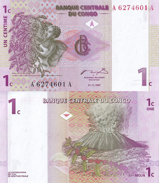 Congo Democratic Republic 1 Centime 1997 P 80 UNC 1/10 Bundle Lot 10 pcs